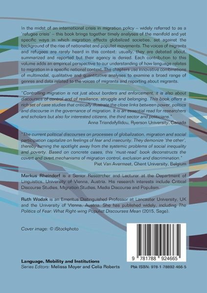 Each chapter in this volume adds an empirical perspective to our understanding of how language relates to migration in a specific national context. The chapters use innovative combinations of multimodal, qualitative and quantitative analyses to examine a broad range of genres and data related to the voices of migrants and reporting about migrants.