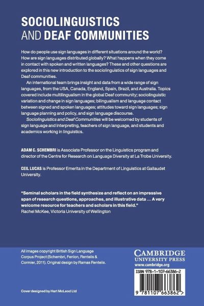 How do people use sign languages in different situations around the world? How are sign languages distributed globally? What happens when they come in contact with spoken and written languages? These and other questions are explored in this new introduction to the sociolinguistics of sign languages and deaf communities. An international team brings insights and data from a wide range of sign languages, from the USA, Canada, England, Spain, Brazil and Australia. Topics covered include multilingualism in the global deaf community, sociolinguistic variation and change in sign languages, bilingualism and language contact between signed and spoken languages, attitudes towards sign languages, sign language planning and policy, and sign language discourse. Sociolinguistics and Deaf Communities will be welcomed by students of sign language and interpreting, teachers of sign language, and students and academics working in linguistics.