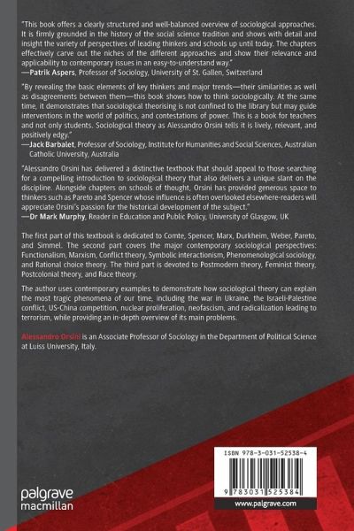 The author combines academic rigour with clear and accessible language, offering students an in-depth and extensive overview of the main, recurring problems that have troubled sociological theory from its origins to the present day. The textbook uses contemporary examples, analysing how sociological theory can explain the most tragic phenomena of our time, including the war in Ukraine, the Israeli-Palestinian conflict, US-China competition over Taiwan, nuclear proliferation, radicalization, neofascism, white suprematism, jihadism, and terrorism.