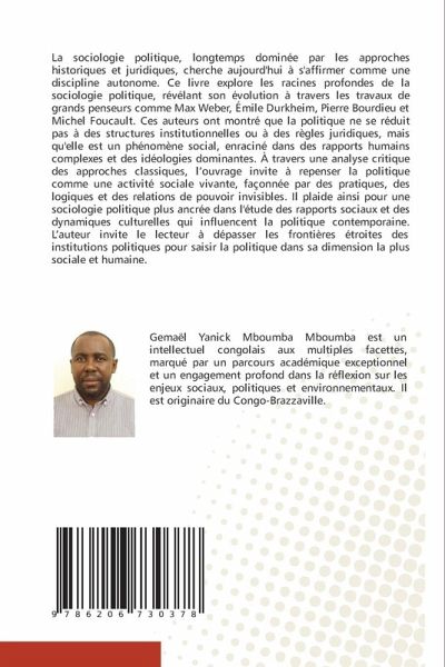 La sociologie politique, longtemps dominée par les approches historiques et juridiques, cherche aujourd'hui à s'affirmer comme une discipline autonome. Ce livre explore les racines profondes de la sociologie politique, révélant son évolution à travers les travaux de grands penseurs comme Max Weber, Émile Durkheim, Pierre Bourdieu et Michel Foucault. Ces auteurs ont montré que la politique ne se réduit pas à des structures institutionnelles ou à des règles juridiques, mais qu'elle est un phénomène social, enraciné dans des rapports humains complexes et des idéologies dominantes. À travers une analyse critique des approches classiques, l'ouvrage invite à repenser la politique comme une activité sociale vivante, façonnée par des pratiques, des logiques et des relations de pouvoir invisibles. Il plaide ainsi pour une sociologie politique plus ancrée dans l'étude des rapports sociaux et des dynamiques culturelles qui influencent la politique contemporaine. L'auteur invite le lecteur à dépasser les frontières étroites des institutions politiques pour saisir la politique dans sa dimension la plus sociale et humaine.
