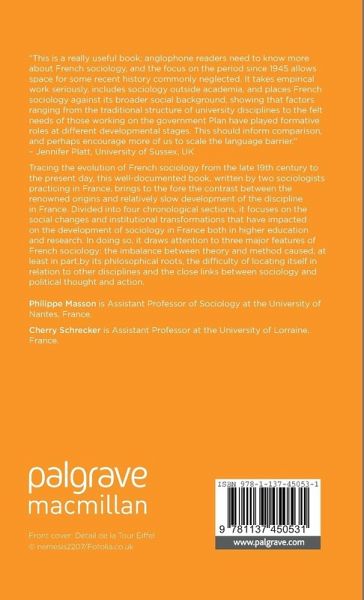 "This is a really useful book; anglophone readers need to know more about French sociology, and the focus on the period since 1945 allows space for some recent history commonly neglected. It takes empirical work seriously, includes sociology outside academia, and places French sociology against its broader social background, showing that factors ranging from the traditional structure of university disciplines to the felt needs of those working on the government Plan have played formative roles at different developmental stages. This should inform comparison, and perhaps encourage more of us to scale the language barrier." - Jennifer Platt, University of Sussex, UK