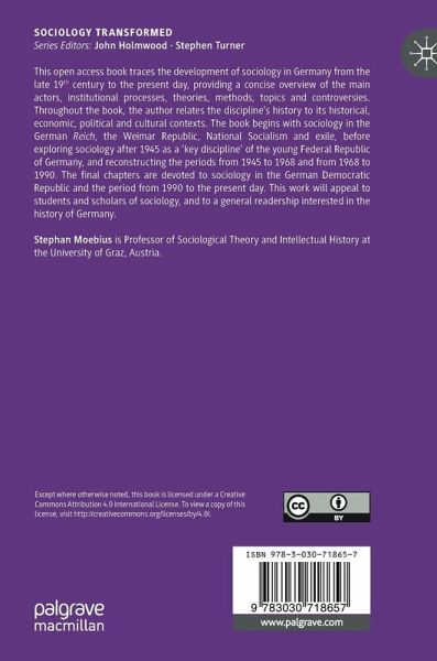 This open access book traces the development of sociology in Germany from the late 19th century to the present day, providing a concise overview of the main actors, institutional processes, theories, methods, topics and controversies. Throughout the book, the author relates the discipline's history to its historical, economic, political and cultural contexts. The book begins with sociology in the German Reich, the Weimar Republic, National Socialism and exile, before exploring sociology after 1945 as a 'key discipline' of the young Federal Republic of Germany, and reconstructing the periods from 1945 to 1968 and from 1968 to 1990. The final chapters are devoted to sociology in the German Democratic Republic and the period from 1990 to the present day. This work will appeal to students and scholars of sociology, and to a general readership interested in the history of Germany.