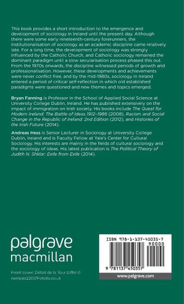 Bryan Fanning is Professor in the School of Applied Social Science at University College Dublin, Ireland. He has published extensively on the impact of immigration on Irish society. His books include The Quest for Modern Ireland: The Battle of Ideas 1912-1986 (2008), Racism and Social Change in the Republic of Ireland: 2nd Edition (2012) and Histories of the Irish Future (2014). Andreas Hess is Senior Lecturer in Sociology at University College Dublin, Ireland and is Faculty Fellow at Yale's Center for Cultural Sociology. His interests are mainly in the fields of cultural sociology and the sociology of ideas. His latest publication is The Political Theory of Judith N. Shklar: Exile from Exile (2014).