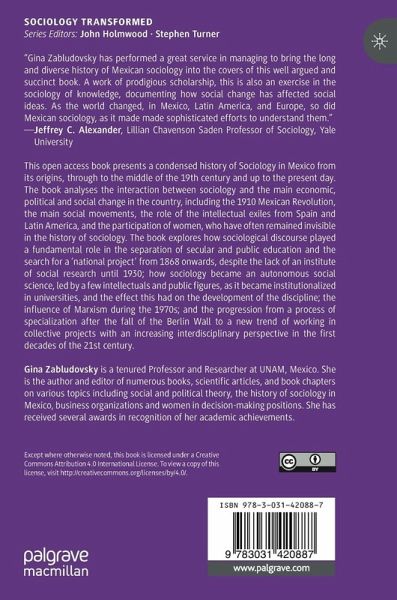 This open access book presents a condensed history of Sociology in Mexico from its origins, through to the middle of the 19th century and up to the present day. The book analyses the interaction between sociology and the main economic, political and social change in the country, including the 1910 Mexican Revolution, the main social movements, the role of the intellectual exiles from Spain and Latin America, and the participation of women, who have often remained invisible in the history of sociology. The book explores how sociological discourse played a fundamental role in the separation of secular and public education and the search for a 'national project' from 1868 onwards, despite the lack of an institute of social research until 1930; how sociology became an autonomous social science, led by a few intellectuals and public figures, as it became institutionalized in universities, and the effect this had on the development of the discipline; the influence of Marxism during the 1970s; and the progression from a process of specialization after the fall of the Berlin Wall to a new trend of working in collective projects with an increasing interdisciplinary perspective in the first decades of the 21st century.