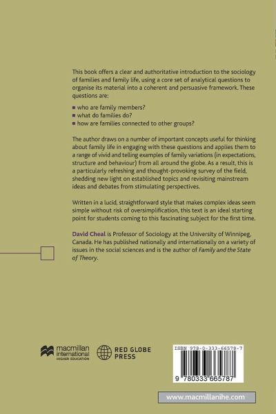 This lucid and accessible introductory text from a highly regarded author provides students who are encountering the sociology of the family for the first time with a systematic and stimulating way of thinking about the subject based on a core set of analytical questions. Coherent and persuasive, it blends theory with empirical examples drawn from all over the world, thus offering valuable insights into the differences and commonalities between families in quite diverse social and cultural contexts.