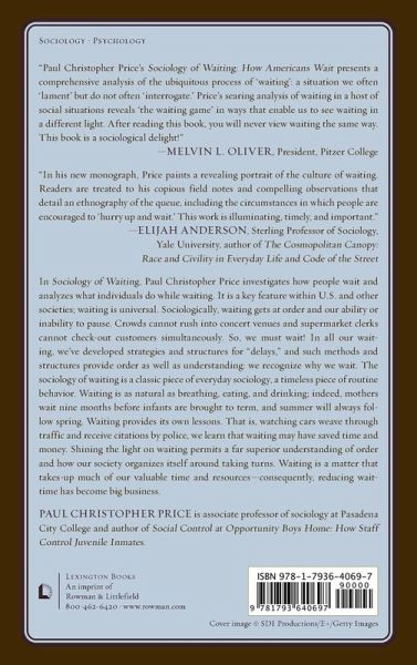 In Sociology of Waiting, Paul Christopher Price investigates how people wait and analyzes what individuals do while waiting. Shining the light on waiting permits a far superior understanding of order, first come-first serve, and how society organizes itself around taking turns. Waiting gets at our ability or inability to pause and consider others.