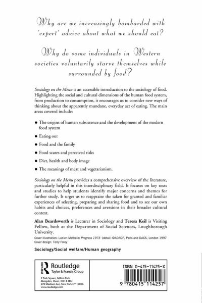 Sociology on the Menu is an accessible introduction to the sociology of food. Highlighting the social and cultural dimensions of the human food system, from production to consumption, it encourages us to consider new ways of thinking about the apparently mundane, everyday act of eating. The main areas covered include: * The origins of human subsistence and the development of the modern food system * Food, the family and eating out * Diet, health and the body image * The meanings of meat and vegetarianism. Sociology on the Menu provides a comprehensive overview of the literature, particularly helpful in this interdisciplinary field. It focuses on key texts and studies to help students identify major concerns and themes for further study. It urges us to re-appraise the taken for granted and familiar experiences of selecting, preparing and sharing food and to see our own habits and choices, preferences and aversions in their broader cultural context.