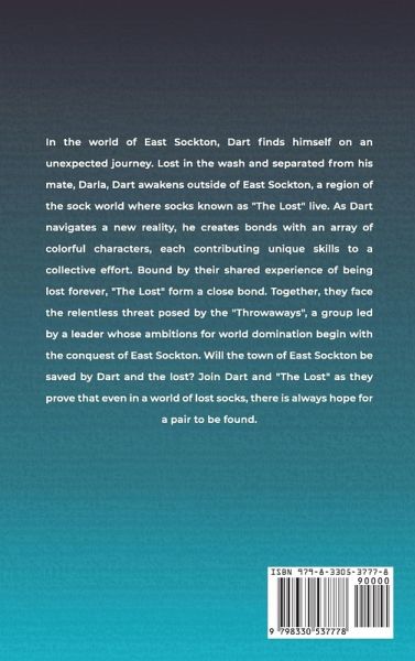 In the world of East Sockton, Dart finds himself on an unexpected journey. Lost in the wash and separated from his mate, Darla, Dart awakens outside of East Sockton, a region in the sock world where the socks known as the "Lost" live. As Dart navigates a new reality, he forms a bond with an array of characters, each contributing unique skills to a collective effort. Bound together by their shared experience of being lost forever, they form a close-knit bond. Together they face the relentless threat of the "Throwaways", a group led by a leader whose ambitions for world domination begin with the conquest of East Sockton. Will the town of East Sockton be saved by Dart and the "Lost" as they prove that even in a world of lost socks, there is always hope for a pair to be found.