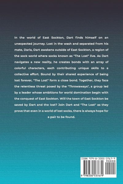 In the world of East Sockton, Dart finds himself on an unexpected journey. Lost in the wash and separated from his mate, Darla, Dart awakens outside of East Sockton, a region in the sock world where the socks known as the "Lost" live. As Dart navigates a new reality, he forms a bond with an array of characters, each contributing unique skills to a collective effort. Bound together by their shared experience of being lost forever, they form a close-knit bond. Together they face the relentless threat of the "Throwaways", a group led by a leader whose ambitions for world domination begin with the conquest of East Sockton. Will the town of East Sockton be saved by Dart and the "Lost" as they prove that even in a world of lost socks, there is always hope for a pair to be found.