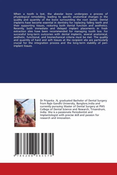 When a tooth is lost, the alveolar bone undergoes a process of physiological remodeling, leading to specific anatomical changes in the quality and quantity of the bone surrounding the root socket. Dental implants have become essential in dentistry for replacing failing teeth and their supporting tissues, restoring both dental function and aesthetics. Recently, both immediate and delayed implant placements in fresh extraction sites have been recommended for managing tooth loss. For successful long-term outcomes with dental implants, several anatomical, aesthetic, functional, and biomechanical criteria must be met. The quality and quantity of hard and soft tissues at the recipient site are particularly crucial for the integration process and the long-term stability of peri-implant tissues.