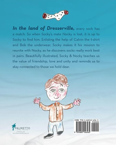 In the land of Dresserville, every sock has a match. So when Socky's mate Nocky is lost, it is up to Socky to find him. Enlisting the help of Calvin, the t-shirt and Bob the underwear, Socky makes it his mission to reunite with Nocky, as he discovers socks really work best in pairs. Beautifully illustrated, Socky & Nocky teaches us the value of friendship, love and unity and reminds us to stay connected to those we hold dear.