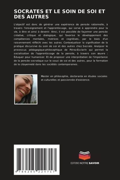L'objectif est donc de générer une expérience de pensée rationnelle, à travers l'enseignement et l'apprentissage, qui serve à apprendre pour la vie, à être et ainsi à devenir. Ainsi, il est possible de façonner une pensée créative, critique et dialogique, qui favorise le développement des compétences mentales, motrices et cognitives, par le biais d'un raisonnement réfléchi avec les autres. Contextualiser la signification de la pratique discursive du soin de soi et des autres chez Socrate. Analyser le processus pédagogique-philosophique de Pérez-Esclarín qui permet la socialisation de l'apprentissage de la pensée, à travers son oeuvre : Éduquer pour humaniser. Et de proposer une interprétation de l'importance de la pensée socratique sur le souci de soi et des autres, pour la formation de la citoyenneté dans les sociétés contemporaines.