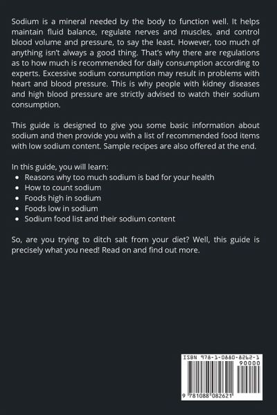 Did you know that the recommended sodium intake by the American Heart Association (AHA) should not exceed 1,500 milligrams per day? However, most people actually consume more than twice that number-about 3,400 milligrams. According to research, at least 9 out of 10 people exceed the dietary limit for sodium intake. What is shocking is that the majority of the sodium we consume comes directly from food processing. You will discover that even foods that may not taste salty are loaded with high quantities of sodium. Sodium is a mineral needed by the body to function well. It helps maintain fluid balance, regulate nerves and muscles, and control blood volume and pressure, to say the least. However, too much of anything isn't always a good thing. That's why there are regulations as to how much is recommended for daily consumption according to experts. Excessive sodium consumption may result in problems with heart and blood pressure. This is why people with kidney diseases and high blood pressure are strictly advised to watch their sodium consumption. This guide is designed to give you some basic information about sodium and then provide you with a list of recommended food items with low sodium content. Sample recipes are also offered at the end. In this guide, you will learn: Reasons why too much sodium is bad for your health How to count sodium Foods high in sodium Foods low in sodium Sodium food list and their sodium content