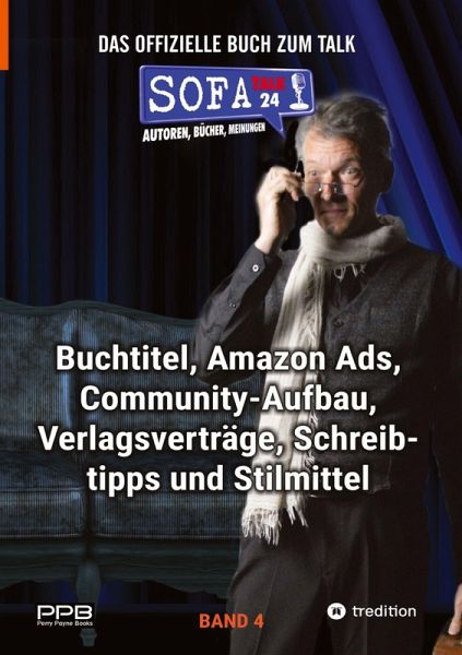 BAND 4: Buchtitel, Amazon Ads, Community-Aufbau, Verlagsverträge und BewerbungBand 4 der SofaTalk24 -Reihe bietet einen umfassenden Einblick in die Kunst des Schreibens, die Strategien der Buchveröffentlichung und die Entwicklungen der Buchbranche. Von den ersten Ideen über den perfekten ersten Satz bis hin zur realistischen Darstellung von Berufen und authentischen Dialogen - hier finden Autoren praxisnahe Schreibtipps und Techniken, um ihre Geschichten wirkungsvoll zu gestalten.Neben einer tiefgehenden Auseinandersetzung mit verschiedenen Genres - von Apokalypse über Dark Academia bis hin zu Thrillern und Utopien - beleuchtet dieser Band auch weniger bekannte, aber essenzielle Themen: Wie lässt sich eine lebendige Nebenfigur erschaffen? Was macht einen außergewöhnlichen Roman aus? Und wie gelingt der kreative Schreibprozess gemeinsam mit anderen?Darüber hinaus gibt es wertvolle Informationen rund um die Buchveröffentlichung - von der Wahl des richtigen Buchtitels über Marketingstrategien wie Amazon Ads, TikTok-Buzz und Community-Aufbau bis hin zu rechtlichen Aspekten bei Verlagsverträgen oder der Veröffentlichung unter Pseudonym.Abgerundet wird dieser Band durch exklusive Interviews mit Branchenkennern, die wertvolle Einblicke und Insider-Tipps liefern.Die SofaTalk24 -Reihe ergänzt sich zu einem unverzichtbaren Nachschlagewerk für Autoren und alle, die sich für die Welt der Bücher interessieren.1. Schreibratgeber91.1 Worauf es ankommt: Kann jeder ein Buch schreiben?91.2 Die Kunst des wirkungsvollen Schreibens121.3 Vom leeren Blatt zum Bestseller: So gelingt der Einstieg151.6 Wichtig! Der erste Satz221.7 Dialoge in Romanen: Worauf kommt es an?251.8 Natürliche und spannende Gespräche281.9 Wörtliche Rede: Zeilenumbrüche301.11 Mindmaps und Plot-Strukturen: Werkzeuge für kreatives Schreiben361.12 Zeitformen: Was Autoren beachten müssen391.13 Realistisch darstellen: So recherchieren Sie authentische Berufe für Ihre Figuren421.14 Fremde Sprachen authentisch integrieren451.15 Ein Roman aus Dialogen521.16 Warum Nebenfiguren deine Geschichte zum Strahlen bringen591.17 Tagebuch als Roman: Kann das funktionieren?611.18 Buchgenres und Schreibtipps dazu631.18.1 Apokalypse und Postapokalypse: Schreiben und Lesen631.18.2 Essay: Definition, Schreibtipps und Marktchancen671.18.3 Katastrophenthriller: Spannung und Schrecken701.18.4 Utopien: Ein besonderes Genre741.18.5 Dark Academia & Cozy Crime - Buchtrends nutzen811.18.6 Kinder- und Jugendbücher schreiben851.18.7 Fantasy Nachlese: Wie realistisch muss Fantasy sein?881.18.8 Nervenkitzel: Spannungsaufbau in Thrillern und Krimis911.22 Auf der Suche nach einer Heimat - Lyrik veröffentlichen1051.23 Sci-Fi und Fantasyautoren Ressourcen: Der ewige Kalender1071.24 Sonderzeichen - Dos and Don'ts für Autoren1091.26 Zahlen im Roman: ausschreiben oder nicht?1171.28 Stilmittel: Anapher, Alliteration, Hyperbel und Paradoxon1231.29 Der Prozess zum perfekten Satz1261.30 "Wer die Regeln kennt, kann sie brechen"1281.31 Wortschöpfung für einen perfekten Roman1311.32 Wie lang sollte ein Kapitel in einem Roman sein?1351.33 Vorbereitung: Was statt wie1381.34 Schreibtipps, über die niemand redet1401.35 Gemeinsam schreiben: Wenn sich Autoren verbinden143und weitere 200 Themen