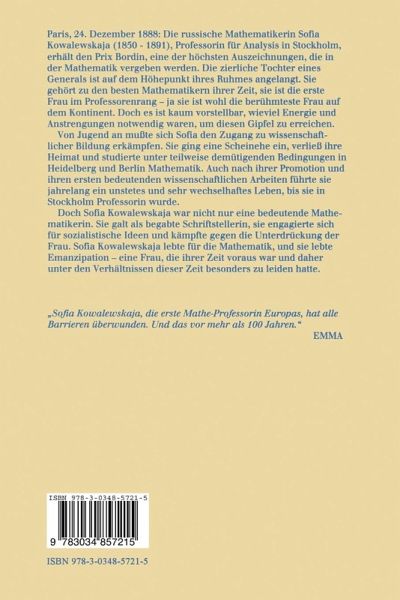 Vorbemerkung Der Einfachheit halber werden im folgenden die Werke, auf die Bezug genom men wird, mit der Nummer des Literaturverzeichnisses genannt. Die Zahl hinter dem Querstrich bedeutet die jeweilige Seitenzahl. Beispiel: 158 Band 2/65 meint die Seite 65 des zweiten Bandes der Nummer 158 des Literaturverzeichnisses, also die relevante Seite im zweiten Band von Felix Kleins Vorlesungen iiber die Entwicklung der Mathematik im 19. Jahrhundert. Abstarnrnung. Jugendzeit in Rul3land 1) Vgl. u.a. 48b/17. 2) 168/12 f. 3) 177/35 f. 4) 180/24 f.; 179/469 ff. 5) 177. 6) Zur Abstammung besonders 48b/9 ff.; 35/12 ff., 60; 177/25, 33 - 36, 44 f.; 93/4 ff.; 37/9 f. 7) 48b/17. 8) 173/23 f. 9) 168/4 f. 10) 35/30. 11) 168. 12) Vgl. 35/24 f. 13) Nach 35/100 und 37/60: Alexandra Alexandrowna Briullowa. 14) 25/397. 15) Frankfurt/M. 1968, 3. Aufl. 1987, erstmals 1897. 16) Ubersetzt nach der englischen Ausgabe 14d/92, 93, 96. 17) 14b/15. 18) 35/30. 19) 14b/18. 20) Ebenda/85 - 88. 21) So schon 25/412. 22) 14b/ll. 23) 37/25. 24) Zum Vorangegangenen vgl. 48b/14 - 16; 25/401, 406; 14b/54; 93/6. 25) 25/399. 26) V gl. 14b/121 ff. 27) 14b/134. 28) Ebenda/131 - 134. 29) Vgl. besonders 14b/89 ff.; auch 174/165 - 173; 48b/30 ff. 30) 35/99. 162 SOFIA KOWALEWSKAJA 31) 35/98 f. 32) 14b/42. 33) Ebenda/43. 34) Ebenda/50 - 53; auch 48b/21 f.