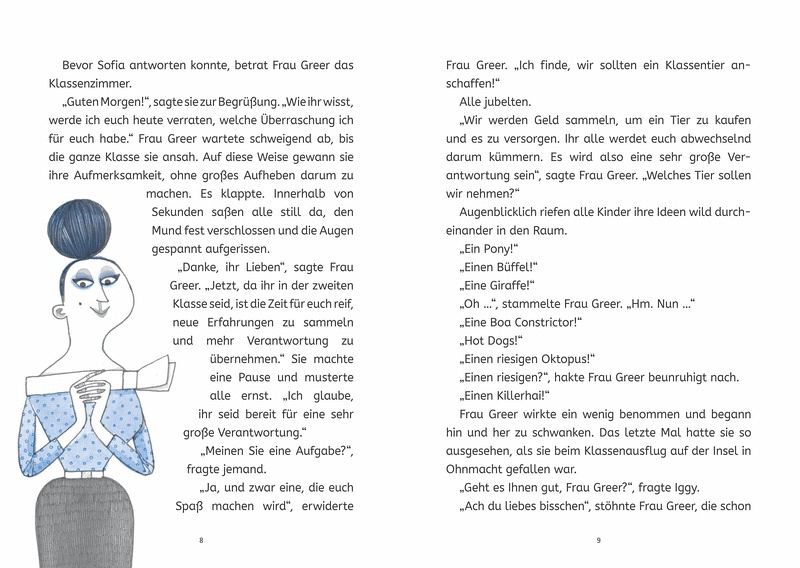 Die Klassenlehrerin Frau Greer schlägt vor, ein Klassentier anzuschaffen, was
