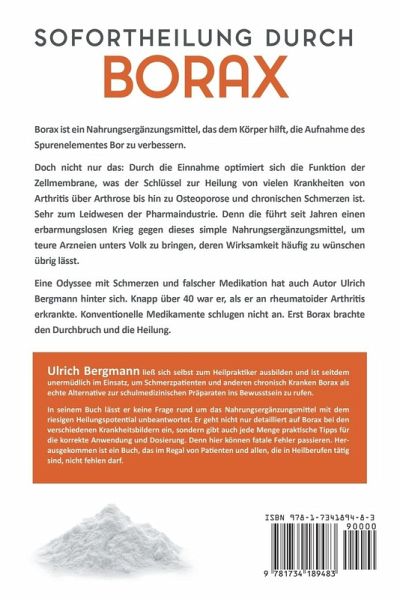 70 % der Deutschen waren in der Umfrage des Healthcare Barometer (PWC Beratung) der Meinung, dass die Pharmaindustrie hauptsächlich an einer Gewinnmaximierung, nicht jedoch einer nachhaltigen Heilung von Patienten interessiert ist. Jeder chronisch Kranke, der auf Medikamente angewiesen ist, hat das am eigenen Leib erfahren und kann häufig auf eine jahrelange Leidensgeschichte von immer neuer Medikation zurückblicken. Wer nach natürlichen Alternativen fragt, wird belächelt und in die Esoterik-Ecke gedrängt. Die Pharmaindustrie setzt Unsummen ein, um die Entscheidungen von Ärzten zu beeinflussen. Nur noch 0,3 % des Marketingbudgets fließen in klassische Maßnahmen. Der Rest wird für Geschenke, Seminarteilnahmen, Publikationen, Reisen und andere Extras für Ärzte eingesetzt Durch das Umgarnen der Ärzte entsteht ein Interessenkonflikt, bei dem das Patientenwohl aus dem Fokus rückt. Das Fatale dabei: Die Hälfte der Ärzte glaubt, dass Kollegen von der Pharmaindustrie beeinflusst werden, schließt sich selbst jedoch davon aus 58.000 Tote gibt es jährlich durch falsche Medikation. Keine Statistik erfasst den Leidensweg von Patienten, die den Versprechungen der Ärzte folgen und immer wieder neue Medikamente ausprobieren Das heißt, Sie müssen sich nach der Diagnose von Rheuma, Arthritis, Osteoporose, Neurodermitis, Epilepsie und vielen anderen Krankheiten darauf verlassen, dass Ihr Arzt Ihnen das passende Medikament verordnet. Dafür nehmen Sie hohe Nebenwirkungen in Kauf. Doch ist das der Weisheit letzter Schluss? Haben Sie wirklich keine Wahl? Autor Ulrich Bergmann war gerade erst knapp über 40, als er die Diagnose rheumatoide Arthritis erhielt. Medikamente und Therapien schlugen nicht an, sodass er täglich mit Schmerzen und Schwellungen inklusive der Nebenwirkungen der Infusionen leben musste. Durch ein Zufall geriet er an einen Naturheilkundler, der ihm das alte Hausmittel Borax empfahl. Nach wenigen Wochen der Einnahme war er geheilt. Heute ist er selbst als Heilpraktiker tätig, um aufzuzeigen, welch großes Potenzial Borax und andere Naturheilverfahren bei der Heilung verschiedener Krankheiten besitzen. Da für den Therapieerfolg die richtige Anwendung entscheidend ist, hat Ulrich Bergmann sich entschlossen, einen umfangreichen Ratgeber zu veröffentlichen: Sie gelten als ein hoffnungsloser medizinischer Fall und möchten alternative Therapiewege gehen? Erfahren Sie, wie Borax schnell hilft Profitieren Sie von fundierten Recherchen über Borax, seine Geschichte und seine Wechselwirkungen im Körper Was heilt, hat recht: Warum die Pharmaindustrie einen gnadenlosen Kampf gegen Borax führt, was zu einem Verkaufsverbot an Privatpersonen geführt hat und wie Sie trotzdem Borax beziehen können Wie Borax bei Arthrose und Arthritis die extrazelluläre Matrix revolutionär verändert Entdecken Sie, wie Sie Borax selbst bei zahlreichen Krankheiten und Beschwerden einsetzen und richtig dosieren In Ihrer Familienanamnese gibt es gehäuft Krebserkrankungen? Mit Borax können Sie eine effektive und günstige Prävention betreiben Wie Sie mit einfachen Tricks die Aufnahme von Bor über die Nahrung fördern können. Plus: Entdecken Sie, wie Borax Ihnen bei der Körperpflege sowie in Haus und Garten nützlich sein kann Möchten Sie aus dem Fanggriff der Pharmaindustrie entkommen oder gar nicht erst hineingeraten? Wagen Sie jetzt den Start in ein gesünderes Leben - werden Sie heute noch aktiv gegen Ihre Krankheiten und Beschwerden!