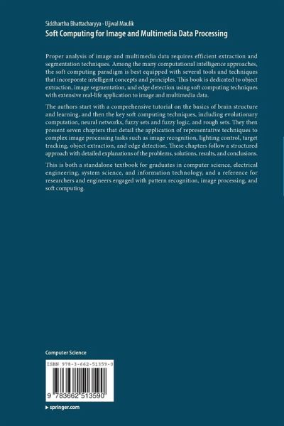 Proper analysis of image and multimedia data requires efficient extraction and segmentation techniques. Among the many computational intelligence approaches, the soft computing paradigm is best equipped with several tools and techniques that incorporate intelligent concepts and principles. This book is dedicated to object extraction, image segmentation, and edge detection using soft computing techniques with extensive real-life application to image and multimedia data. The authors start with a comprehensive tutorial on the basics of brain structure and learning, and then the key soft…mehr