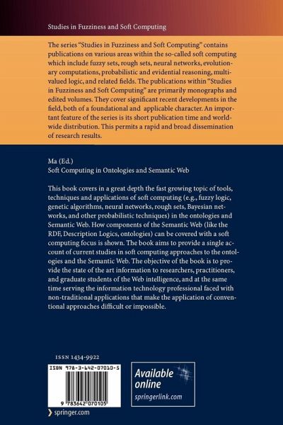 This book covers in a great depth the fast growing topic of tools, techniques and applications of soft computing (e.g., fuzzy logic, genetic algorithms, neural networks, rough sets, Bayesian networks, and other probabilistic techniques) in the ontologies and Semantic Web. How components of the Semantic Web (like the RDF, Description Logics, ontologies) can be covered with a soft computing focus is shown. The book aims to provide a single account of current studies in soft computing approaches to the ontologies and the Semantic Web. The objective of the book is to provide the state of the art information to researchers, practitioners, and graduate students of the Web intelligence, and at the same time serving the information technology professional faced with non-traditional applications that make the application of conventional approaches difficult or impossible.