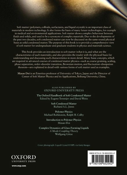 Soft matter (polymers, colloids, surfactants, liquid crystals) are an important class of materials for modern and future technologies. They are complex materials that behave neither like a fluid nor a solid. This book describes the characteristics of such materials and how we can understand such characteristics in the language of physics.