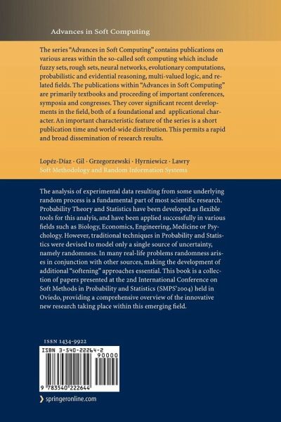 The analysis of experimental data resulting from some underlying random process is a fundamental part of most scientific research. Probability Theory and Statistics have been developed as flexible tools for this analyis, and have been applied successfully in various fields such as Biology, Economics, Engineering, Medicine or Psychology. However, traditional techniques in Probability and Statistics were devised to model only a singe source of uncertainty, namely randomness. In many real-life problems randomness arises in conjunction with other sources, making the development of additional "softening" approaches essential. This book is a collection of papers presented at the 2nd International Conference on Soft Methods in Probability and Statistics (SMPS'2004) held in Oviedo, providing a comprehensive overview of the innovative new research taking place within this emerging field.