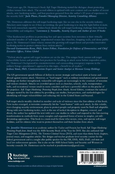 "Dr. Hesterman addresses the soft target hardening topic like no one else in the security industry. Attackers assess targets to see if they are inviting; the goal hardening is to stop the fight before it starts. This well-researched, superbly written book details the soft target hardening challenge from threat to vulnerability and mitigation." Lawrence J. Fennelly, Security Expert and Author of over 35 books
