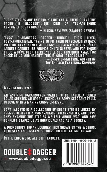 War upends lives. An aspiring paratrooper wants to be hazed...a bored squad creates an urban legend...an Army sergeant falls in love with a Marine Corps officer.... Soft Targets is a collection of short stories linked by themes of identity, camaraderie, vulnerability, and loss. They examine the stories we tell about war, and how conflict shapes us as individuals and as a society. A profoundly human journey, Inks shows us the wounds soldiers collect along the way, both seen and unseen. In the end, we're all soft targets.