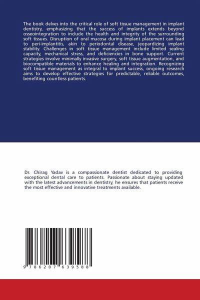 The book delves into the critical role of soft tissue management in implant dentistry, emphasizing that the success of implants extends beyond osseointegration to include the health and integrity of the surrounding soft tissues. Disruption of oral mucosa during implant placement can lead to peri-implantitis, akin to periodontal disease, jeopardizing implant stability. Challenges in soft tissue management include limited sealing capacity, mechanical stress, and deficiencies in bone support. Current strategies involve minimally invasive surgery, soft tissue augmentation, and biocompatible materials to enhance healing and integration. Recognizing soft tissue management as integral to implant success, ongoing research aims to develop effective strategies for predictable, reliable outcomes, benefiting countless patients.