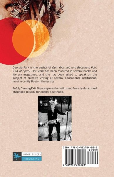Softly Glowing Exit Signs is a photo album of a life lived intensely and painfully, but really lived, and survived. As with any heroine, Georgia Park is who we look for at the end, walking through that fire, not intact, not okay, but absolutely capable of going on. Georgia Park is a woman growing up through these pages, into a survivor, someone you want to know because she's damn clever, fiendishly smart, and desperately real. She doesn't try to be cool or sexy, she's so beyond the usual cults and tropes, her maturity lies in her willingness to tell it as it is.