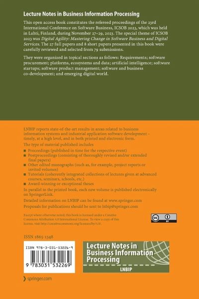 They were organized in topical sections as follows: Requirements; software procurement; platforms, ecosystems and data; artificial intelligence; software startups;…mehr