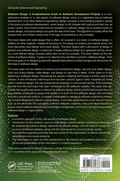 1. Introduction to Design 2. Introduction to Software Product Design 3. Approaches to Software Design 4. Elements of Software Design 5. Software Design Activities 6. Data, Storage, and Retrieval 7. Data Design 8. Product Architecture Design 9. Security and Safety Design 10. Input Design 11. Output Design 12. Code Design 13. Process Design 14. Help Design 15. Establishing the Software Design 16. Quality Assurance in Software Design 17. Engineering Drawings for Establishing Software Design 18. Handling Software Design Projects Appendix A: Creativity and Innovation for Software Designers Appendix B: Who Can Be a Software Designer? Appendix C: Roles and Responsibilities Appendix D: Knowledge Management Appendix E: Sample Set of Drawings
