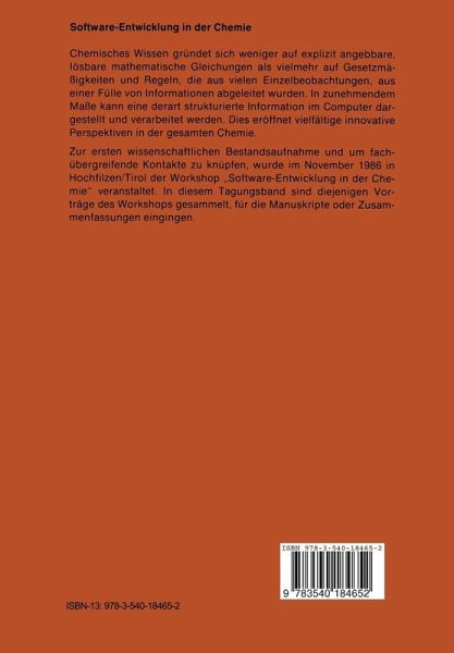 Die Chemie ist ein Wissensgebiet, das besonders geeignet ist, mit Hilfe des Computers neue Möglichkeiten der Problemlösung zu erschließen. In diesem Tagungsband sind diejenigen Vorträge des Workshops "Software-Entwicklung in der Chemie" gesammelt, für die Manuskripte oder Zusammenfassungen eingingen.