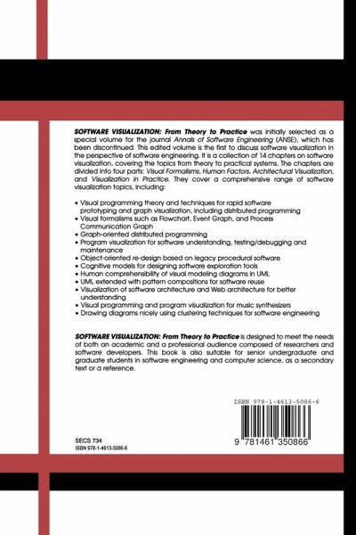 Software Visualization: From Theory to Practice was initially selected as a special volume for "The Annals of Software Engineering (ANSE) Journal", which has been discontinued. This special edited volume, is the first to discuss software visualization in the perspective of software engineering. It is a collection of 14 chapters on software visualization, covering the topics from theory to practical systems. The chapters are divided into four Parts: Visual Formalisms, Human Factors, Architectural Visualization, and Visualization in Practice. They cover a comprehensive range of software visualization topics, including