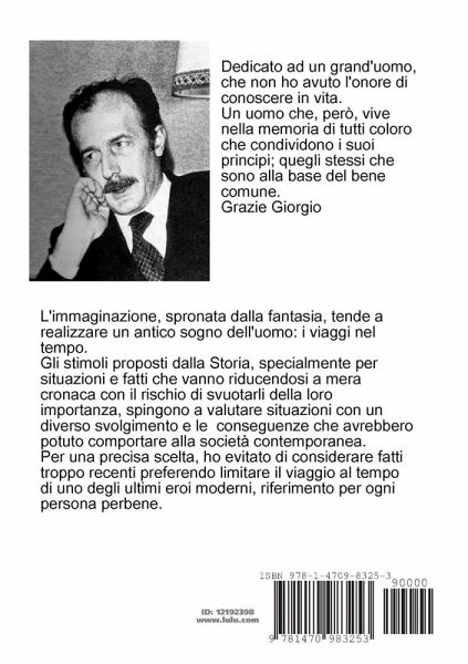 L'immaginazione, spronata dalla fantasia, tende a realizzare un antico sogno dell'uomo: i viaggi nel tempo. Gli stimoli proposti dalla Storia, specialmente per situazioni e fatti che vanno riducendosi a mera cronaca con il rischio di svuotarli della loro importanza, spingono a valutare situazioni con un diverso svolgimento e le conseguenze che avrebbero potuto comportare alla società contemporanea. Per una precisa scelta, ho evitato di considerare fatti troppo recenti preferendo limitare il viaggio al tempo di uno degli ultimi eroi moderni, riferimento per ogni persona perbene.
