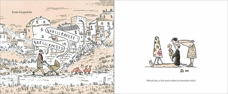 Philip Waechter erzählt in vielen pointierten Bildern vom beinahe unglaublichen Glück, Vater zu werden. Von einem Vater, der selbst von so profanen Dingen wie dem ersten Wickeln oder der Rote-Bete-Schlacht völlig ergriffen ist, und den unausweichlichen Babyschwimmkursen und Sandkastengesprächen. Und davon, wie Väter auch nach schlaflosen Nächten der Champions-League treu bleiben können.