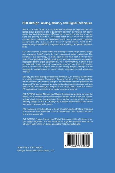 SOI Design: Analog, Memory and Digital Techniques will be of interest to circuit design engineers. It is also intended as a general graduate level text to introduce state of the art design principles for SOI circuit design.