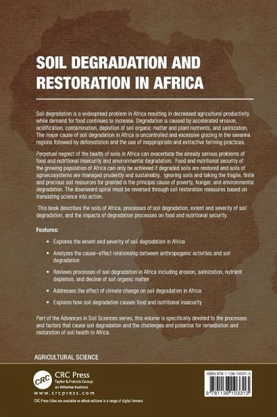 This book describes the soils of Africa, processes of soil degradation, extent and severity of soil degradation, and the impacts of degradation processes on food and nutritional security.