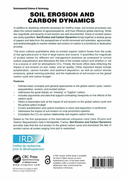 The most complete, nonpartisan source of information on this hot agronomic topic available today, this book brings together a diverse group of papers and data to resolve the debate between sedimentologists and soil scientists and agronomists over whether the effects of soil erosion on carbon and atmospheric CO2 is beneficial or destructive. Divided into four sections, it offers data on how soil erosion affects soil, water, and air quality. Topics include mineralization rate, inundation, sediment deposition, and global warming potential, as well as carbon dioxide, methane, and nitrous oxide emissions, and the implications of soil erosion on the global carbon cycle and carbon budget.