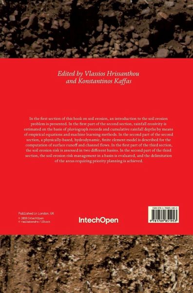 In the first section of this book on soil erosion, an introduction to the soil erosion problem is presented. In the first part of the second section, rainfall erosivity is estimated on the basis of pluviograph records and cumulative rainfall depths by means of empirical equations and machine learning methods. In the second part of the second section, a physically-based, hydrodynamic, finite element model is described for the computation of surface runoff and channel flows. In the first part of the third section, the soil erosion risk is assessed in two different basins. In the second part of the third section, the soil erosion risk management in a basin is evaluated, and the delimitation of the areas requiring priority planning is achieved.