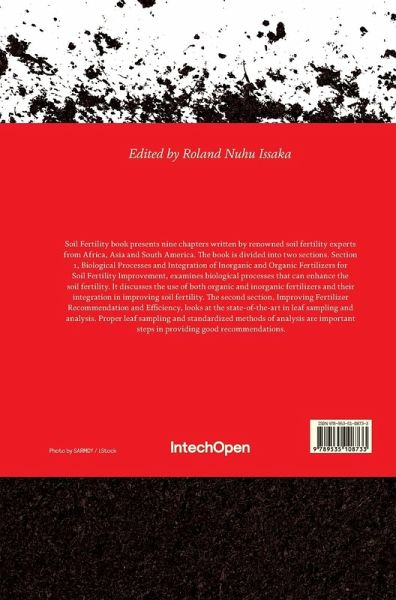 Soil Fertility book presents nine chapters written by renowned soil fertility experts from Africa, Asia and South America. The book is divided into two sections. Section 1, Biological Processes and Integration of Inorganic and Organic Fertilizers for Soil Fertility Improvement, examines biological processes that can enhance the soil fertility. It discusses the use of both organic and inorganic fertilizers and their integration in improving soil fertility. The second section, Improving Fertilizer Recommendation and Efficiency, looks at the state-of-the-art in leaf sampling and analysis. Proper leaf sampling and standardized methods of analysis are important steps in providing good recommendations.