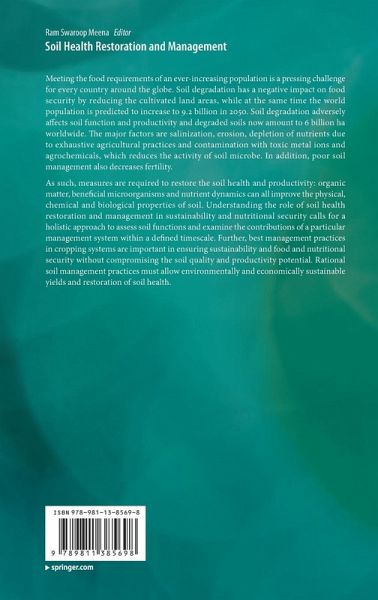 Meeting the food requirements of an ever-increasing population is a pressing challenge for every country around the globe. Soil degradation has a negative impact on food security by reducing the cultivated land areas, while at the same time the world population is predicted to increase to 9.2 billion in 2050. Soil degradation adversely affects soil function and productivity and degraded soils now amount to 6 billion ha worldwide. The major factors are salinization, erosion, depletion of nutrients due to exhaustive agricultural practices and contamination with toxic metal ions and…mehr
