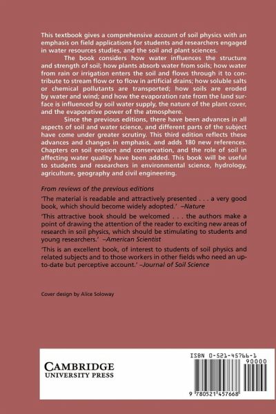 Now in its third edition, this textbook gives a comprehensive account of soil physics with emphasis on field applications for students and research workers engaged in water resources studies, and soil and plant sciences. New chapters are included on soil erosion and chemical transport in soil.