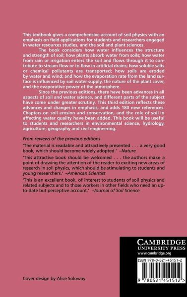 Now in its third edition, this textbook gives a comprehensive account of soil physics with emphasis on field applications for students and research workers engaged in water resources studies, and soil and plant sciences. New chapters are included on soil erosion and chemical transport in soil.