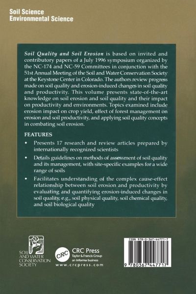 This volume is based on the proceedings of the conference on soil erosion and soil quality held at Keystone, Colorado, in 1996. It examines the issues in soil erosion which is becoming a serious problem in the twentieth century. The book is useful for soil scientists, agronomists and foresters.