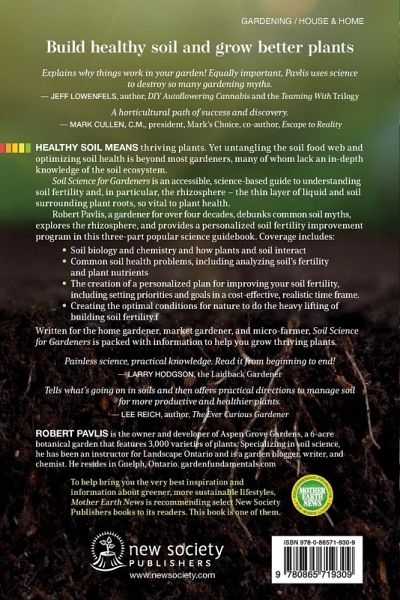 Soil Science for Gardeners is an easy-to-read, practical guide to the science behind a healthy soil ecosystem and thriving plants. The book debunks common myths, explains soil science basics, and provides the reader with the knowledge to create a personalized soil fertility improvement program for better plants.