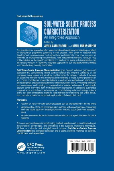 After years of research and development, environmental and agricultural professionals now have an array of methods for characterizing soil processes. Soil-Water-Solute Process Characterization: An Integrated Approach goes beyond simple technical guidance by also addressing each method's limitations and showing readers how to select alternatives. The wealth of methodological tools creates the need for this holistic text, which addresses the complicating factors such as spatial and temporal variability of soil processes, scale issues, soil structure, and the trade-offs between methods. The book focuses on advanced methods for the monitoring and modeling of mass transfer processes in soil.