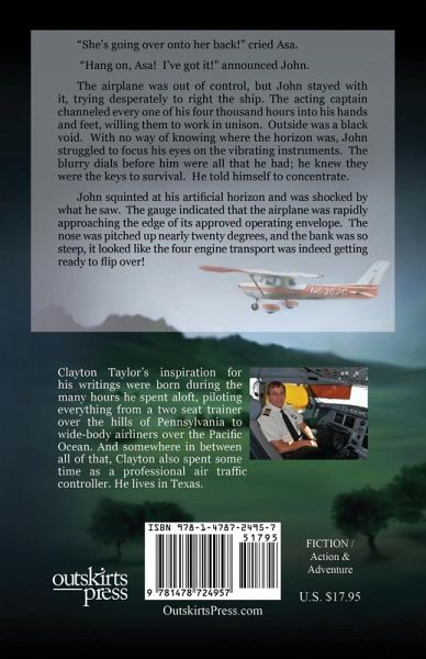 "She's going over onto her back!" cried Asa. "Hang on, Asa! I've got it!" announced John. The airplane was out of control, but John stayed with it, trying desperately to right the ship. The acting captain channeled every one of his four thousand hours into his hands and feet, willing them to work in unison. Outside was a black void. With no way of knowing where the horizon was, John struggled to focus his eyes on the vibrating instruments. The blurry dials before him were all that he had; he knew they were the keys to survival. He told himself to concentrate. John squinted at his artificial horizon and was shocked by what he saw. The gauge indicated that the airplane was rapidly approaching the edge of its approved operating envelope. The nose was pitched up nearly twenty degrees, and the bank was so steep, it looked like the four engine transport was indeed getting ready to flip over!