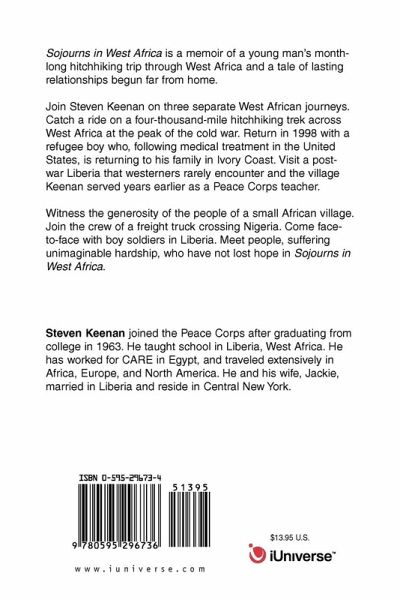 Sojourns in West Africa is a memoir of a young man's month-long hitchhiking trip through West Africa and a tale of lasting relationships begun far from home. Join Steven Keenan on three separate West African journeys. Catch a ride on a four-thousand-mile hitchhiking trek across West Africa at the peak of the cold war. Return in 1998 with a refugee boy who, following medical treatment in the United States, is returning to his family in Ivory Coast. Visit a post-war Liberia that westerners rarely encounter and the village Keenan served years earlier as a Peace Corps teacher. Witness the generosity of the people of a small African village. Join the crew of a freight truck crossing Nigeria. Come face-to-face with boy soldiers in Liberia. Meet people, suffering unimaginable hardship, who have not lost hope in Sojourns in West Africa.