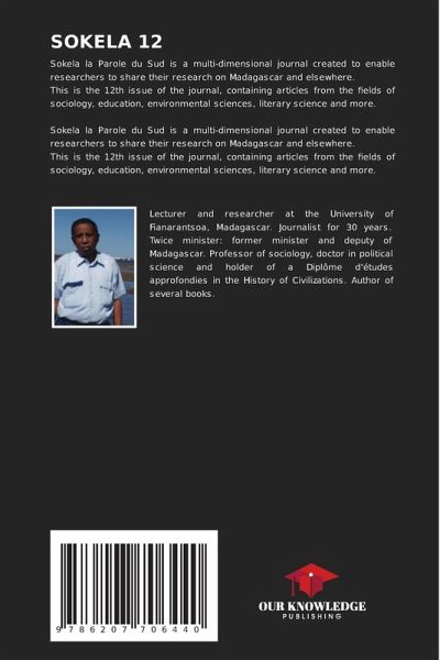Sokela la Parole du Sud is a multi-dimensional journal created to enable researchers to share their research on Madagascar and elsewhere.This is the 12th issue of the journal, containing articles from the fields of sociology, education, environmental sciences, literary science and more.Sokela la Parole du Sud is a multi-dimensional journal created to enable researchers to share their research on Madagascar and elsewhere.This is the 12th issue of the journal, containing articles from the fields of sociology, education, environmental sciences, literary science and more.
