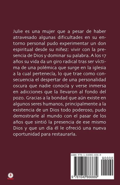 Julie es una mujer que a pesar de haber atravesado algunas dificultades en su entorno personal pudo experimentar un don espiritual desde su niñez: vivir con la presencia de Dios y dominar su palabra. A los 17 años su vida da un giro radical tras ser víctima de una polémica que surge en la iglesia a la cual pertenecía, lo que trae como consecuencia el despertar de una personalidad oscura que nadie conocía y verse inmersa en adicciones que la llevaron al fondo del pozo. Gracias a la bondad que aún existe en algunos seres humanos, principalmente a la existencia de un Dios todo poderoso, pudo demostrarle al mundo con el pasar de los años que sintió la presencia de ese mismo Dios y que un día él le ofreció una nueva oportunidad para restaurarla.